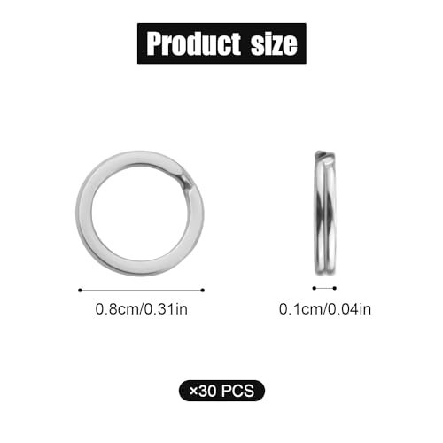 30pcs 8mm Stainless Steel Split Rings for Keychains & Jewelry Making
