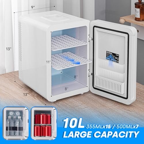 The ENVENTOR mini refrigerator boasts a 10-liter capacity, allowing it to comfortably store up to 15 cans of your favorite beverages or 7 bottles of water. Its compact dimensions (11x8x8 inches) mean it can fit into tight spaces without overwhelming your room’s aesthetic. Inside, you’ll find two removable shelves, making it easy to organize snacks, drinks, and even skincare products.