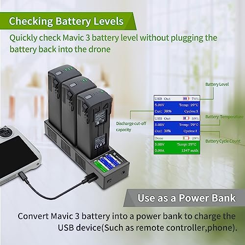 Hanatora Dual Charger Hub for DJI Mavic 3 with Discharge & Storage Mode
