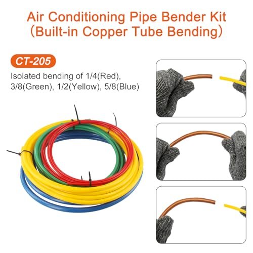 Professional HVAC technicians and DIY enthusiasts, upgrade your pipe work with this versatile 4-piece copper tube bending kit. Precision-engineered for 1/4″, 1/2″, 3/8″, and 5/8″ tubes, ensuring smooth bends without kinking or damaging your air conditioning pipes.