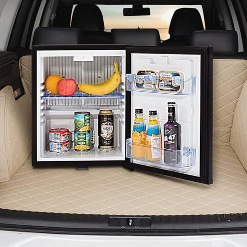 Smad Mini Fridge with Lock Compact Refrigerator for Bedroom Dorm Office No Noise,12V/110V,1.0 Cubic Feet, Black