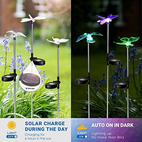 Transform your outdoor space with SOLPEX 6-Pack Solar Butterfly Lights! Featuring multi-color changing LEDs, these eco-friendly stakes bring vibrant glow to your garden, patio, or lawn. Easy to install and charming with bird & butterfly designs, they create a magical ambiance effortlessly.