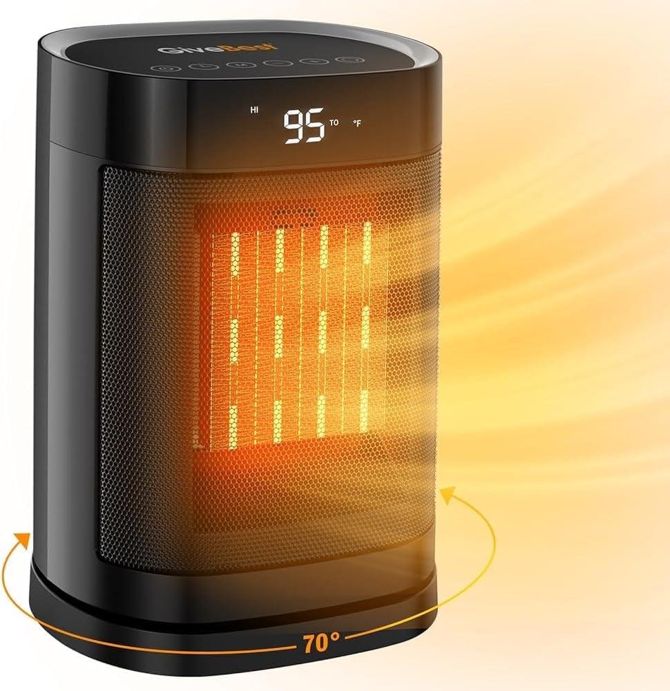 • Wide-Angle Oscillation: The 70° oscillation feature distributes warmth evenly throughout your room, ensuring no chilly spot is left behind.